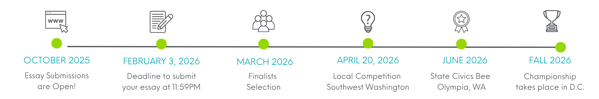 Participate in our National Civics Bee, presented by the Greater Vancouver Chamber, with support from the U.S. Chamber of Commerce Foundation, to become better informed about American democracy and test your civics knowledge for a chance to win recognition and cash prizes!